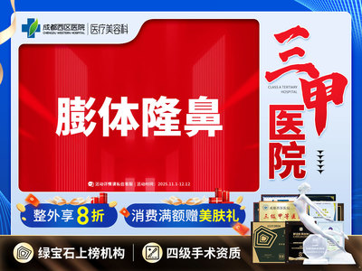 成都西区医院医疗美容荣获新氧年度鼻部人气机构,新氧鼻部绿宝石医生机构,专注鼻部整形@段焘@邓东伟,三甲医院,四级手术资质,副高医师团队,安心塑美,消费透明。