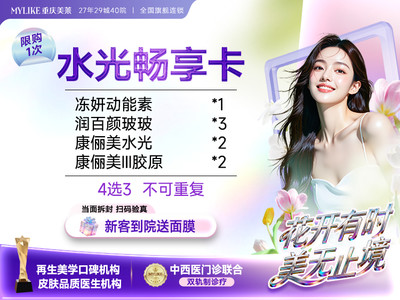 ◆本项目为: 【水光畅享卡】冻妍动能素*1/润百颜玻玻*3 /PDRN*2 /康俪美III胶原*2(4选3,不可重复)