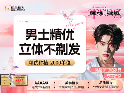 1. 该项目为男士发际线不剃发种植2000单位(精优植2.0)