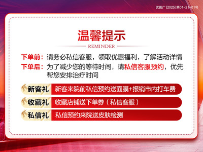 【下单提醒】请在下单前私信在线客服,详细了解具体项目内容;由于每位顾客体质差异等原因,店内所有售卖项目适应症,均以到院后建议的为准;