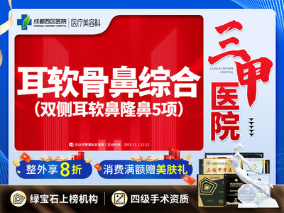 成都西区医院医疗美容荣获新氧年度鼻部人气机构,新氧鼻部绿宝石医生机构,专注鼻部整形@段焘@邓东伟,三甲医院,四级手术资质,副高医师团队,安心塑美,消费透明。