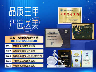 成都西区医院医疗美容荣获25年度新氧鼻部品质机构&年度鼻部品质医生、新氧年度鼻部人气机构,新氧鼻部绿宝石医生机构,专注鼻部整形@段焘@邓东伟,三甲医院,四级手术资质,副高医师团队,安心塑美,消费透明。