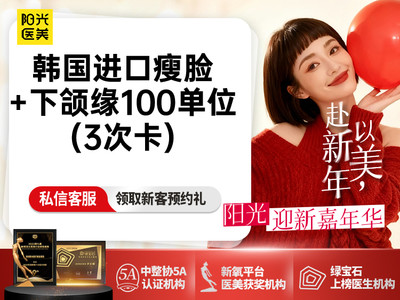 【温馨提示】 ①【 3次卡】韩国进口瘦脸+下颌缘 足量注射 可查可验 ②该链接为平台特惠产品,每人限首次体验,下单请咨询在线客服预约到院治疗时间; ③因为预约到院治疗顾客较多,为保证服务质量,请您至少提前一天预约。