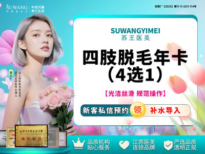 温馨提示:亲爱的氧气们,此项目为半导体四肢脱毛(大腿/小腿/大臂/小臂)年卡,4选1,一年6次,限女性使用,未到院顾客可以享受的价格,如有不懂,请私信在线客服。