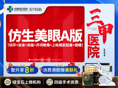 套餐详情:切开+去皮+去脂+开内眼角+上睑提肌轻度+翘睫——何莎医生
