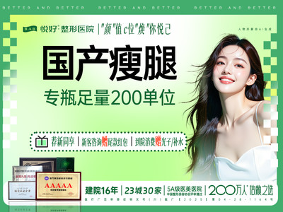 温馨提示: 此项目为国产瘦腿200单位 ,根据顾客面诊情况注射大约上限为200单位,专瓶足量200u!;单次特价和多次特价不同享只能二选一,根据不同部位实际注射会有用量差异以实际用量需求为准,了解更多详情请点击左下角绿色标志咨询在线人工客服哦~