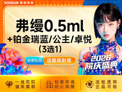 1、此项目为:弗缦胶原蛋白0.5ml+铂金瑞蓝/公主/卓悦玻尿酸3选1,全渠道限购1次;