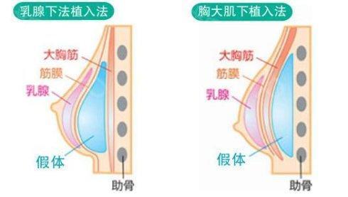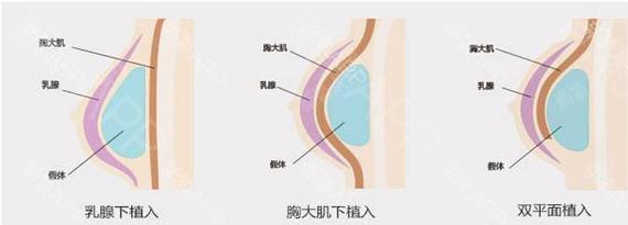 ↑ 双平面技术是将假体部分放在乳腺下,部分放置在胸大肌下