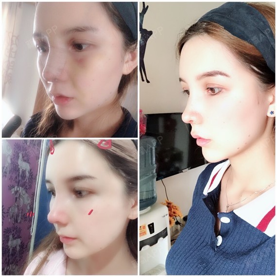 为赵院长打call😁😁好啦,不啰嗦,先说鼻子恢复,现在我自己觉得山根的眉间假体还有点肿以外,推鼻骨的地方也还是有点点肿,但都不影响颜值