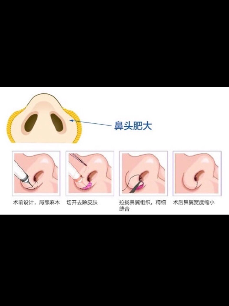 把厚而肥大的下鼻软骨部分去除后,把两侧下鼻软骨之间缝合从而把圆形的鼻尖做出理想形状样子。同时应充分的去除厚的鼻部皮下组织与脂肪,必要时会采用自体软骨来垫。