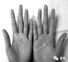 简单来说,多汗症基本是由于交感神经失调导致的汗腺分泌过度。因为额头、手掌的汗腺分布比较密集,容易表现为头汗症或者手汗症。