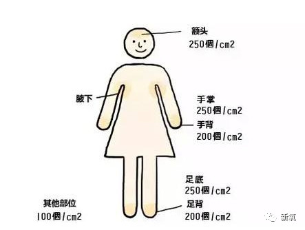 大汗腺主要分布在身体的腋窝、乳晕、肛周等部位,而小汗腺,就是我们日常排汗的腺体。遍布全身真皮深层和皮下组织,额头、手掌、足部这些部位分布更密集一些。
