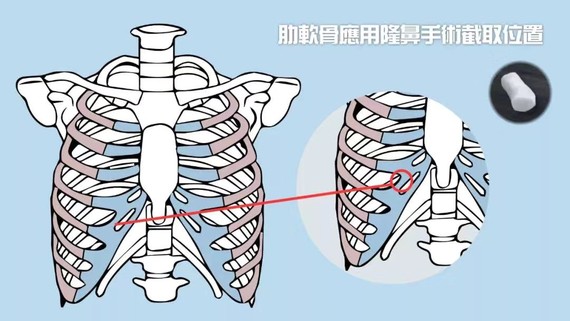 �假体材料选择: 我为小美女打造的方案就是假体+自体软⻣鼻部多项,这种鼻尖、鼻翼肉肉的鼻子,想抬高精雕鼻尖不是难题,形态也会得到一定程度改善,但材料一定要选对,鼻子的高低和鼻子的长短是有需要一定支撑力的,综合各个因素,选择了肋软⻣:它是透明软⻣,两端连接⻣性肋⻣和胸⻣,质地比其它两种软⻣硬,是很好的塑形支撑材料,关键是量足,一般取自右侧第7、8、9肋的软⻣。