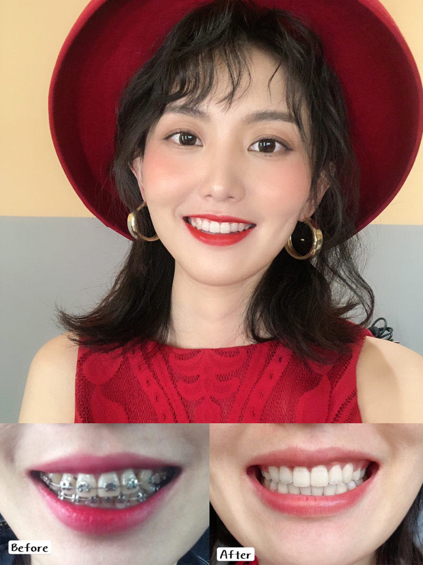 我戴的是自锁托槽矫正,比传统金属托槽矫正速度更快,矫正过程更安全哦~