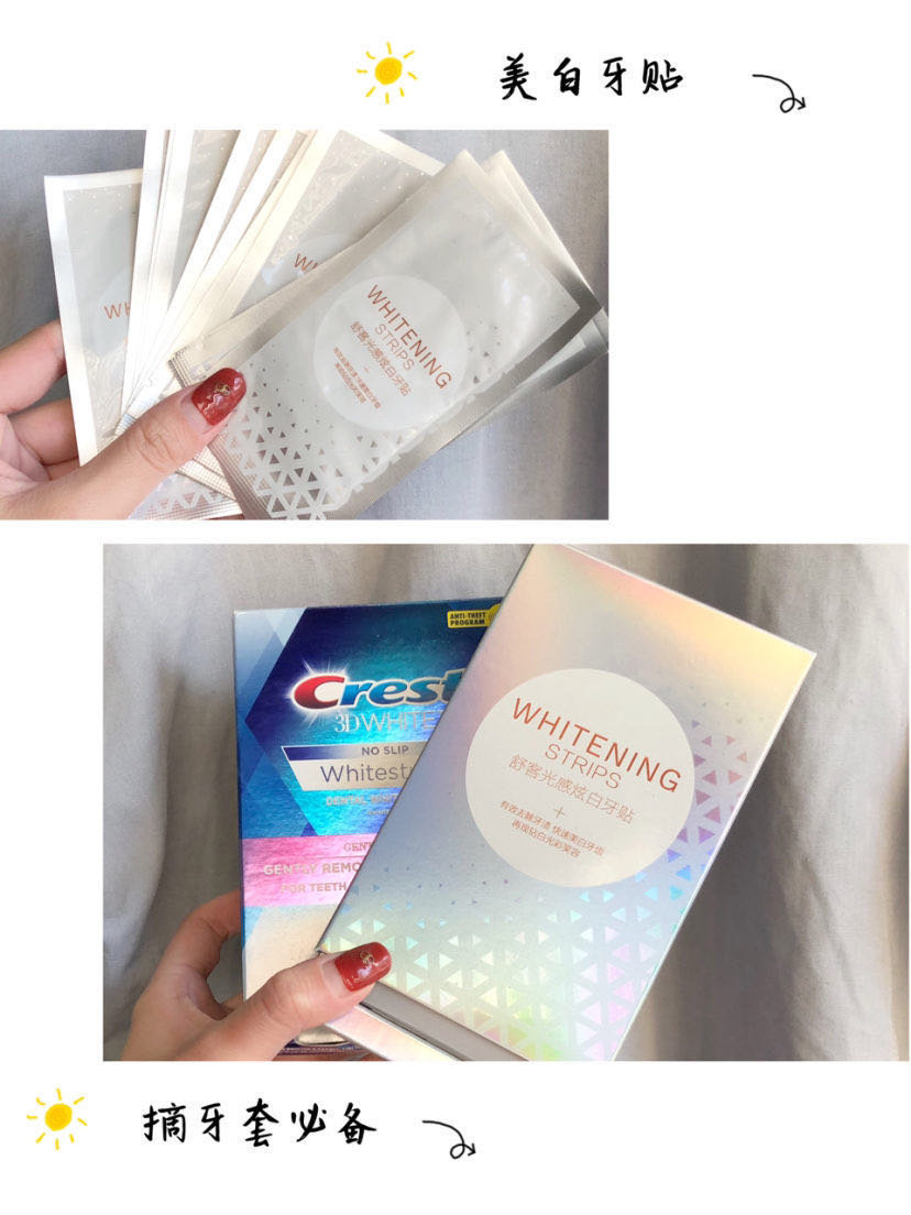 👉🏻美bai牙贴:图五两款牙贴我都用过了,白色款性价比非常高,不输国外大牌!😘用完没觉得牙齿酸软敏感,是很温和的那种。我刚拆牙套的时候觉得牙齿不够白,几乎每天都贴,后来减少次数每周3次吧,一长一短分别贴上下牙,每次半小时就好了。😃坚持下来真的真的有变化,大黄牙拜拜!!🌀