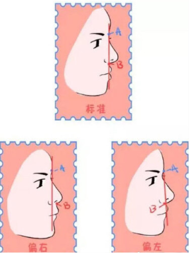 在眉间画A点,在鼻唇交界处画B点✏️
