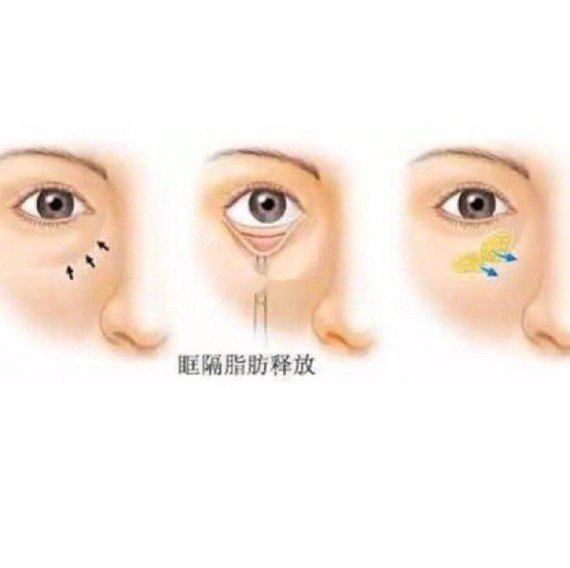 🌸原理:在内睑结膜做小切口,采用精细吸脂仪吸出眶内脂肪