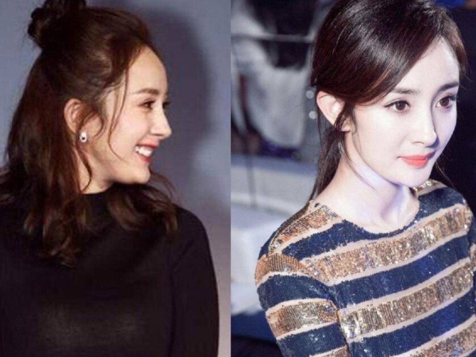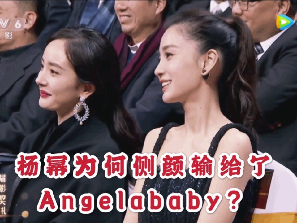 杨幂的面型属于凹面型,下巴后缩与翘下巴形成了嘴部凹陷,尤其是笑起来的时候,对比一旁的Angelababy就很明显。