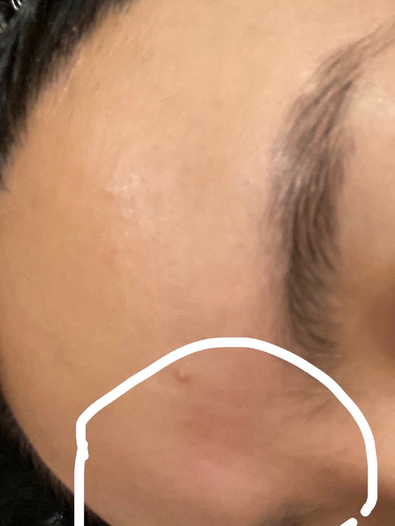 但是后来想我就打个溶解酶应该没啥问题吧,谁知道坑就是坑🙄️🙄️🙄️,我融完两周了,然后发现额头只溶解掉中间的,两边凸中间凹。