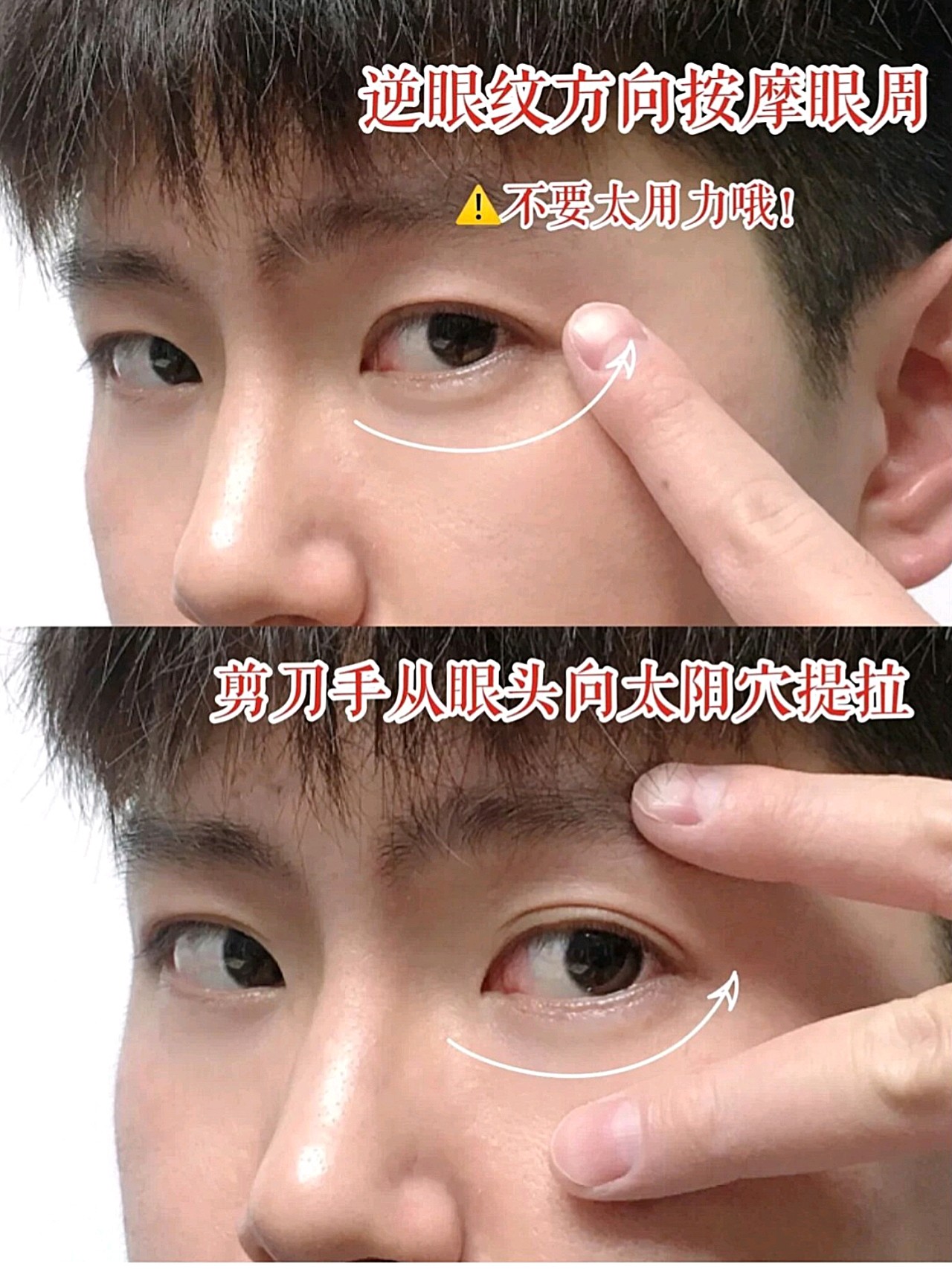 V后来我从朋友那get到了-套眼部按摩手法,配上男士蒸汽眼罩坚持了一段时间