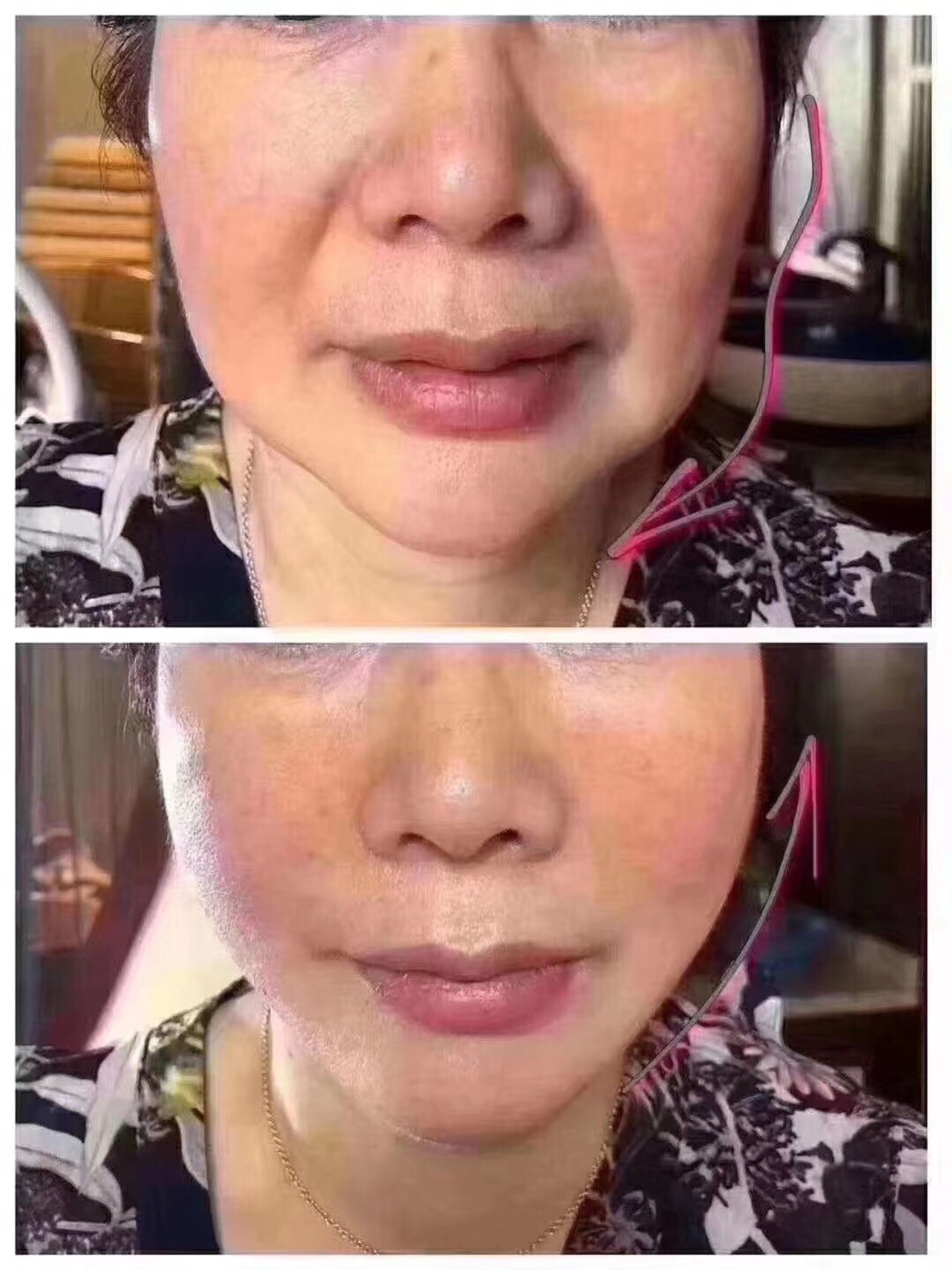 通过逆重力方向的提拉皮肤,使下垂的下巴、八字皱纹、脸颊等向上提拉收紧,重塑V脸。