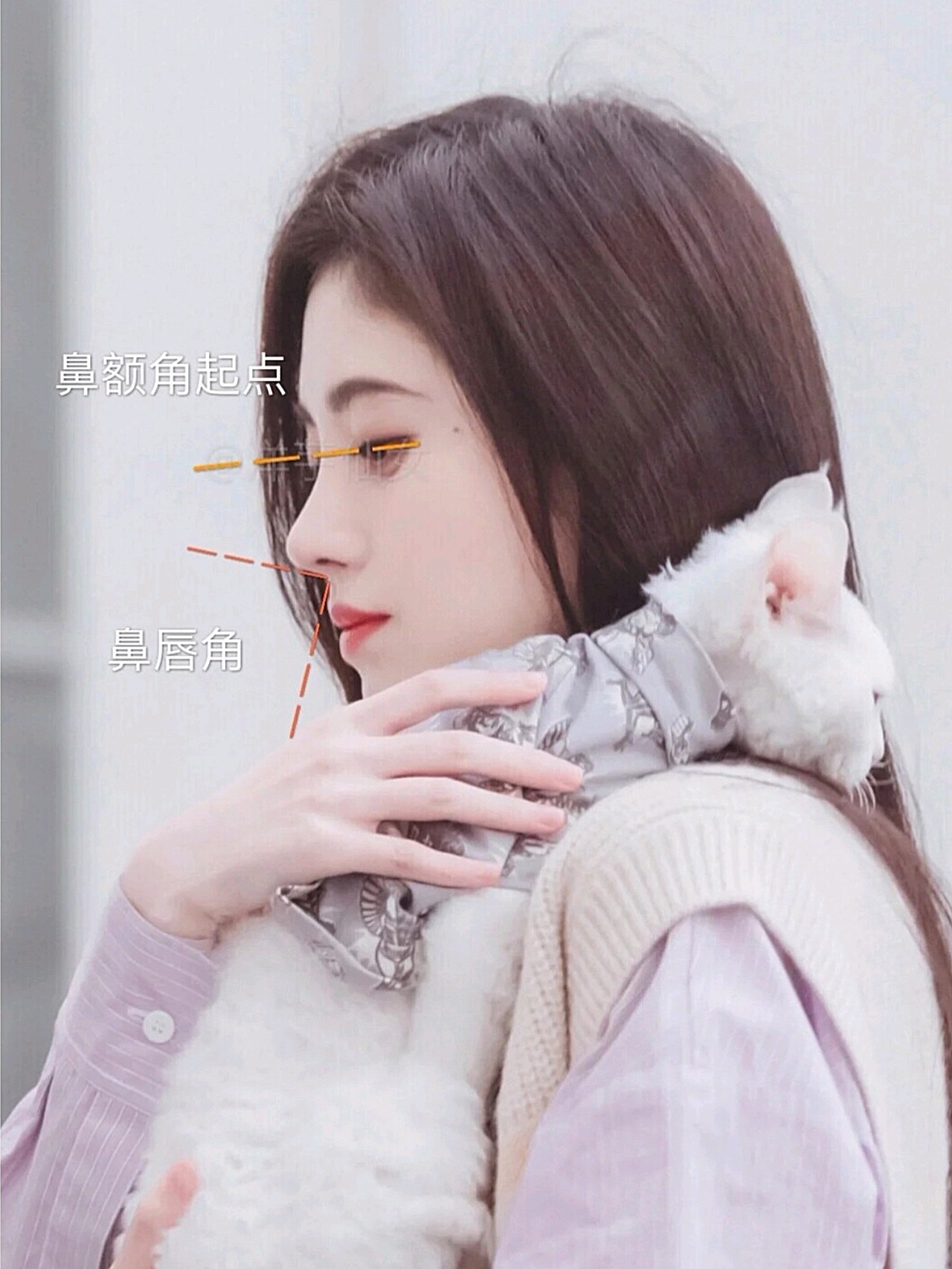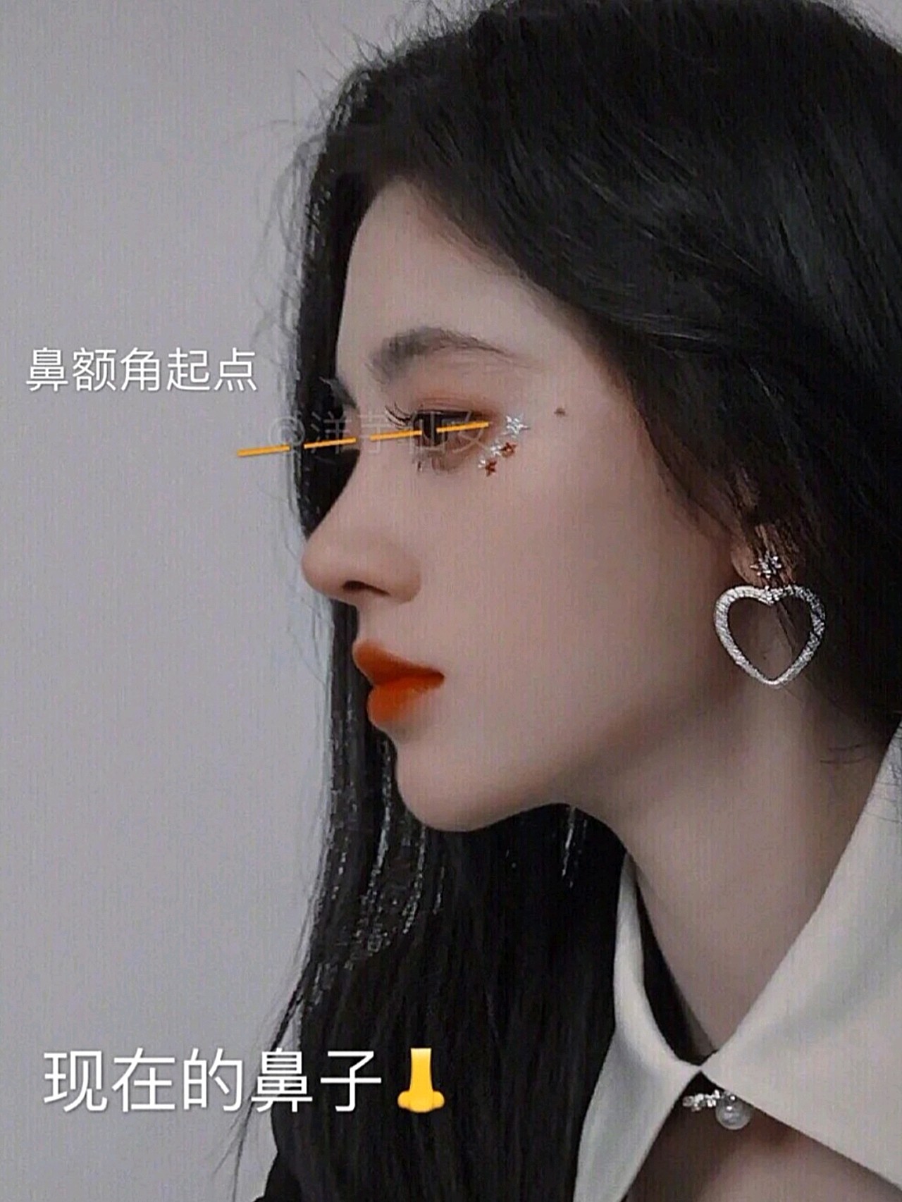 👃鼻额角是鼻背到额头的夹角,这个夹角是由山根起点和额头高度决定的,一般在两眼之间起点的鼻额角会更自然。