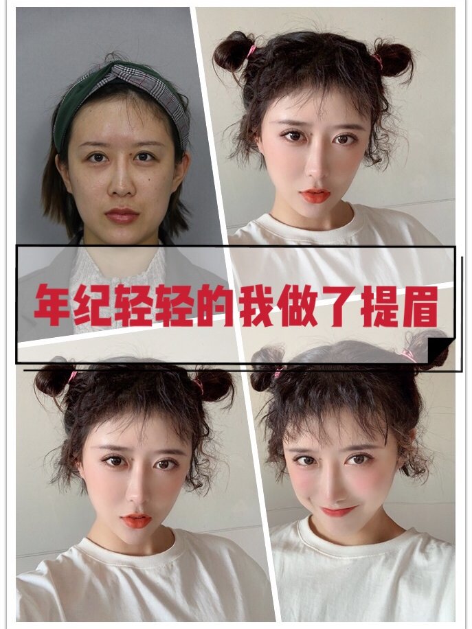 很多人说提眉比较适合年纪大的人做,用来改善眉形、改善眼周皱纹。但我之前的眉毛太低,眉形不好看,天生眼尾比较垂,给人一种无精打采的感觉。在网上咨询了很多种方法后,了解到通过提眉可以改善自己眼部问题。