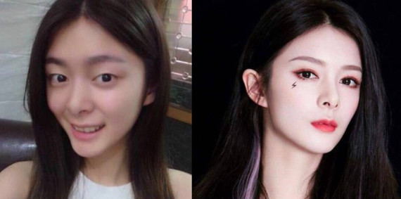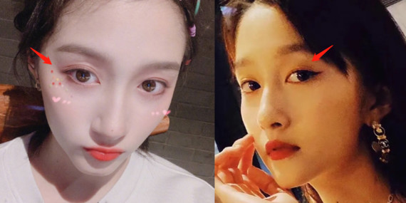 如果遇到三无资质的美容院技师来做,很有可能会搞成像大幂幂这种前宽后窄的双眼皮。