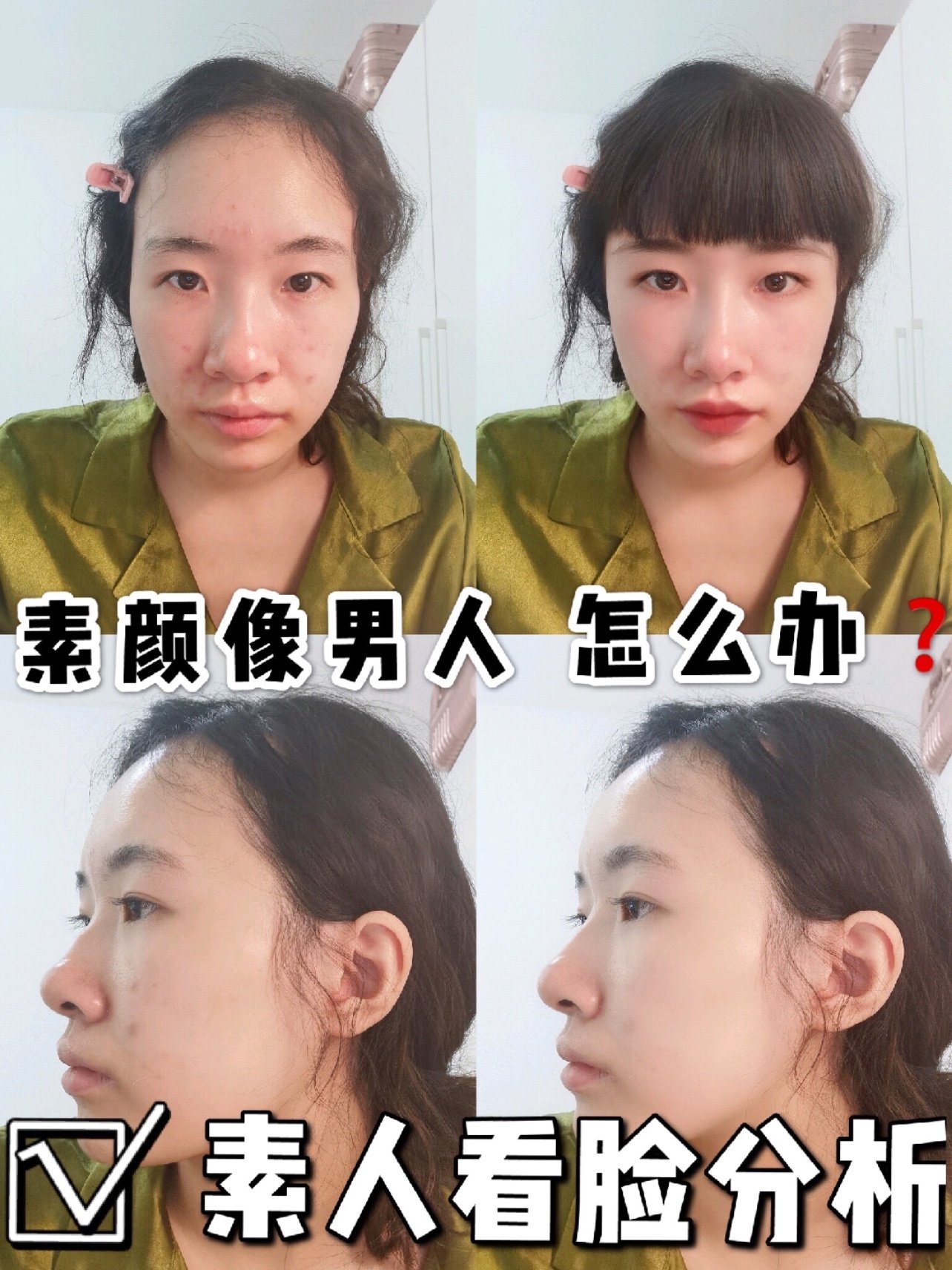 📝姐妹们的问题是“求看脸,求分析如何改善长相老气的问题。”白白还是从正面、侧面这两个方面来分析一下。