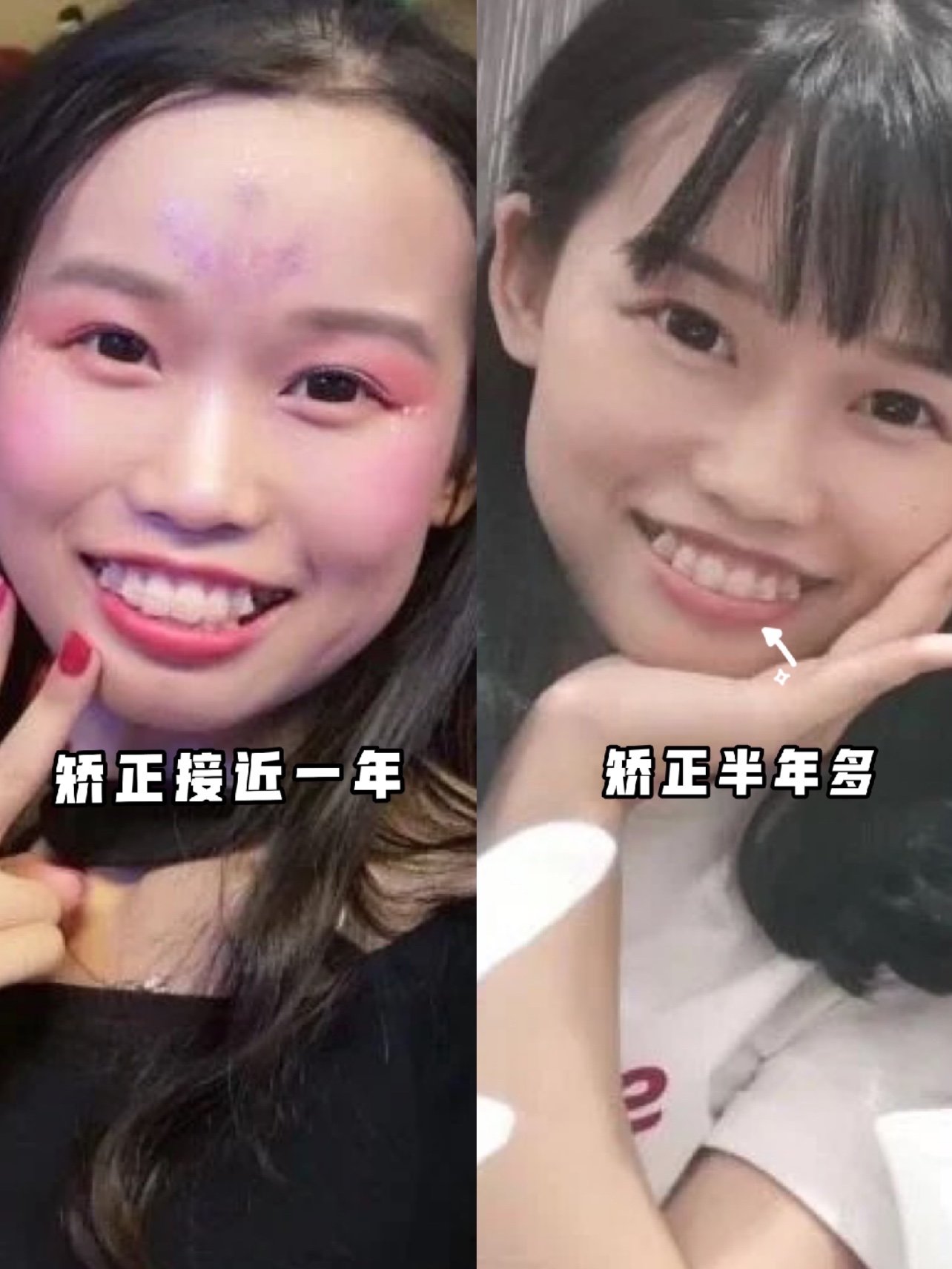 🧚🏽♀️变化分享:矫正前小姐姐自然合嘴状态能明显看出类似凤姐的龅牙问题,张嘴的时候门牙外凸更是十分明显。