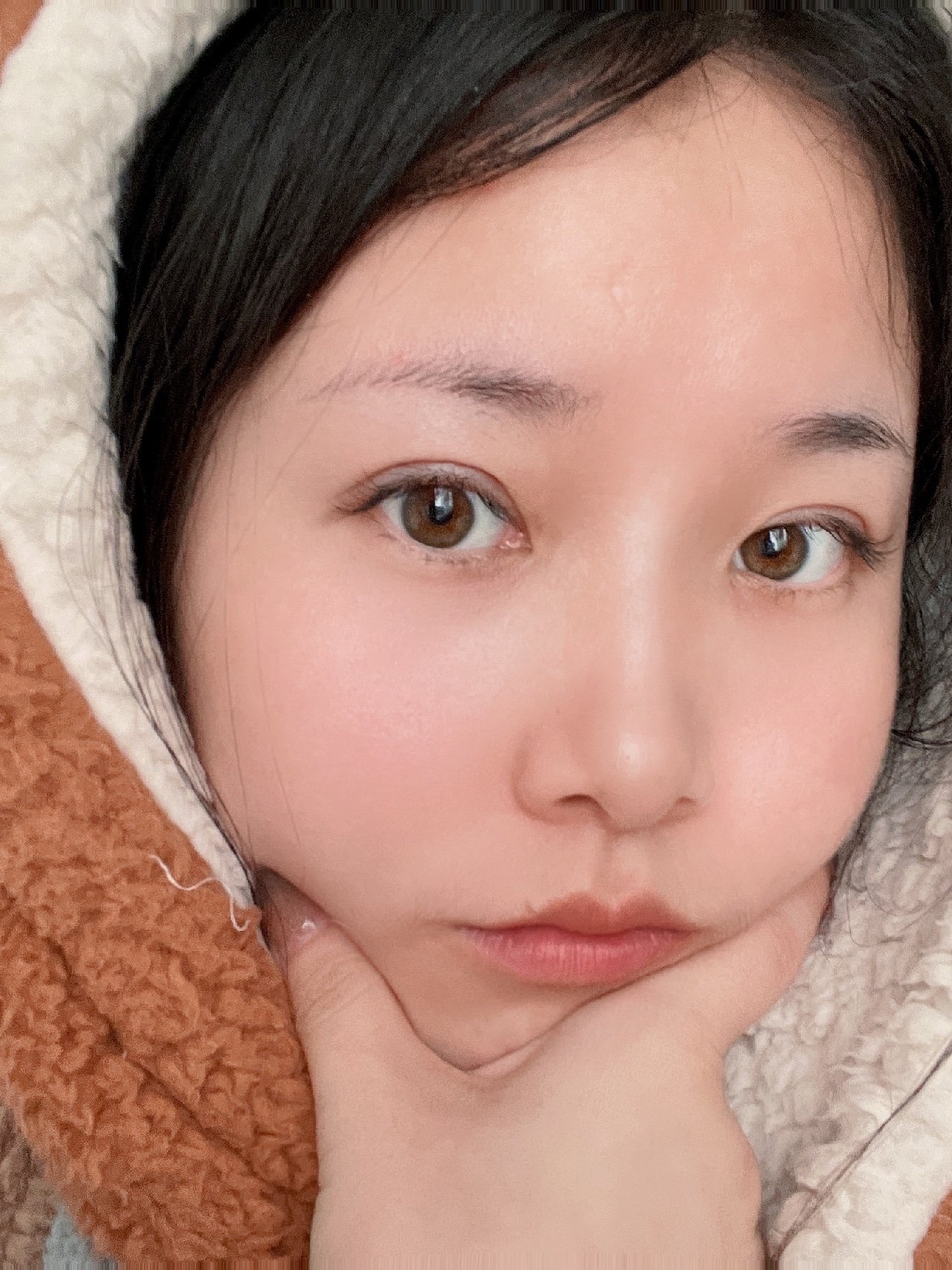当时还没拆线眼尾有点分叉 原相机无美颜并且好几天不洗脸真的是看起来非常丑了