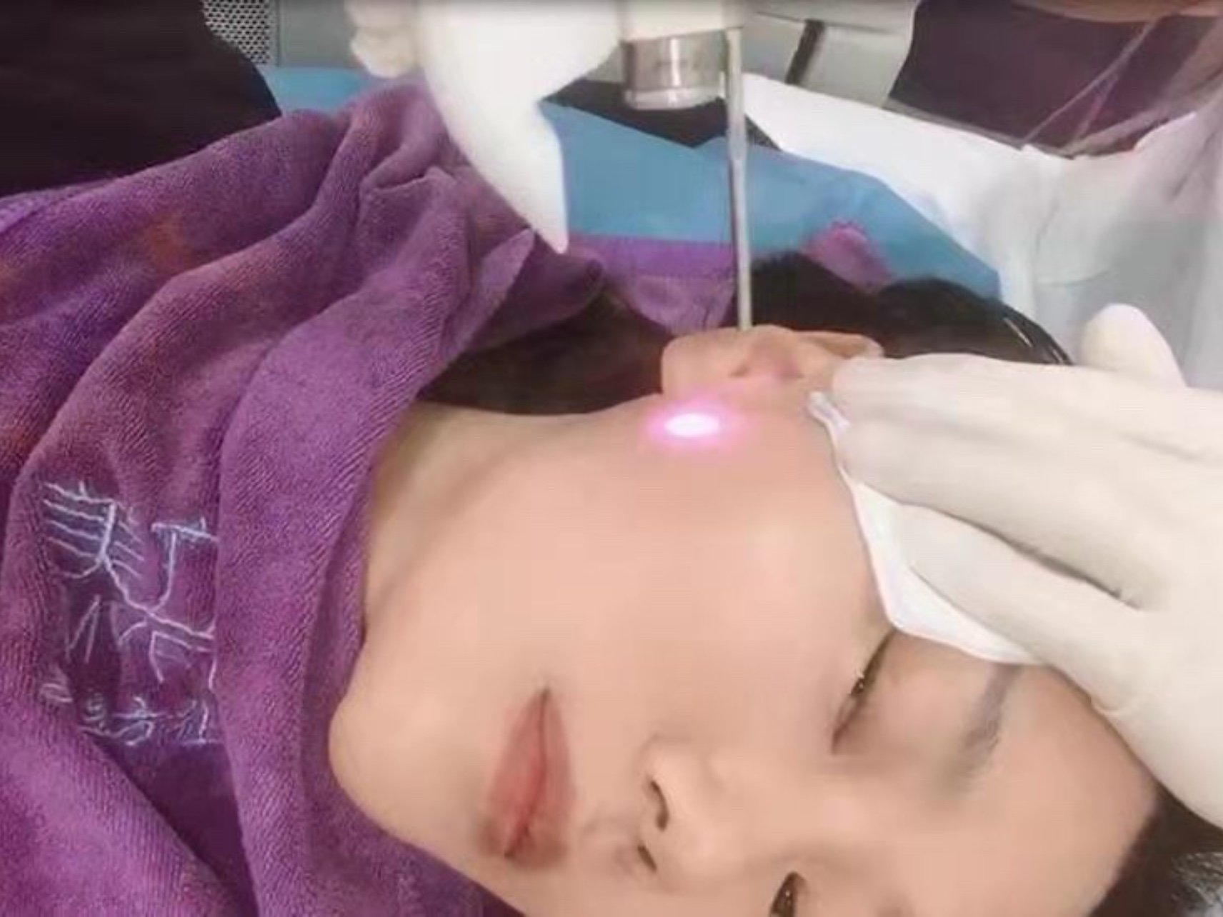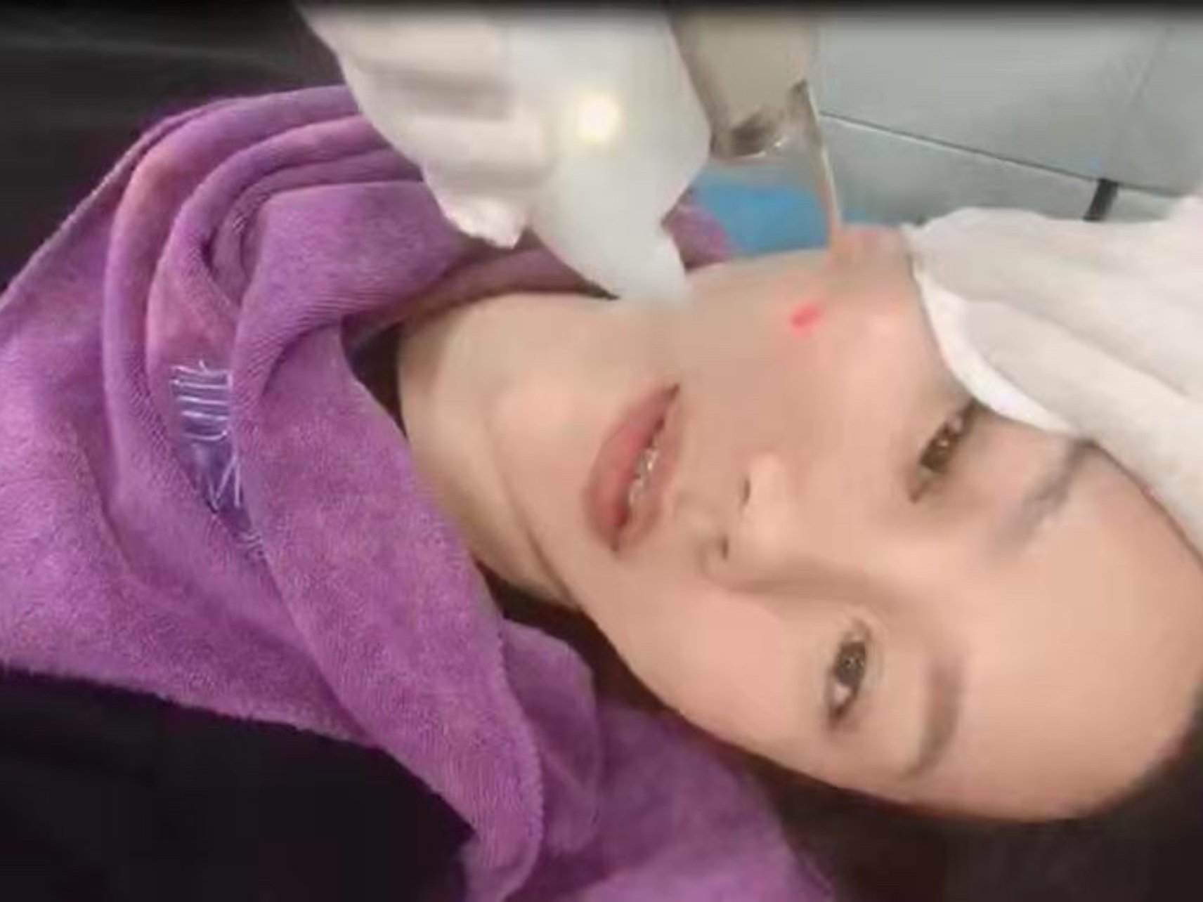 面部扫黄做完之后就开始了我最期待面部溶脂这一步激光是作用在脂肪层加热脂肪,促进新陈代谢 。将仪器定在一个位置上,让激光自行游走重点做的位置是脸颊两侧和下巴这些肉肉比较多的地方,这个步骤做起来也是没有什么痛感的。但是也是会感觉到热,做完一边大概需要5分钟最后一步是祛黑眼圈了。