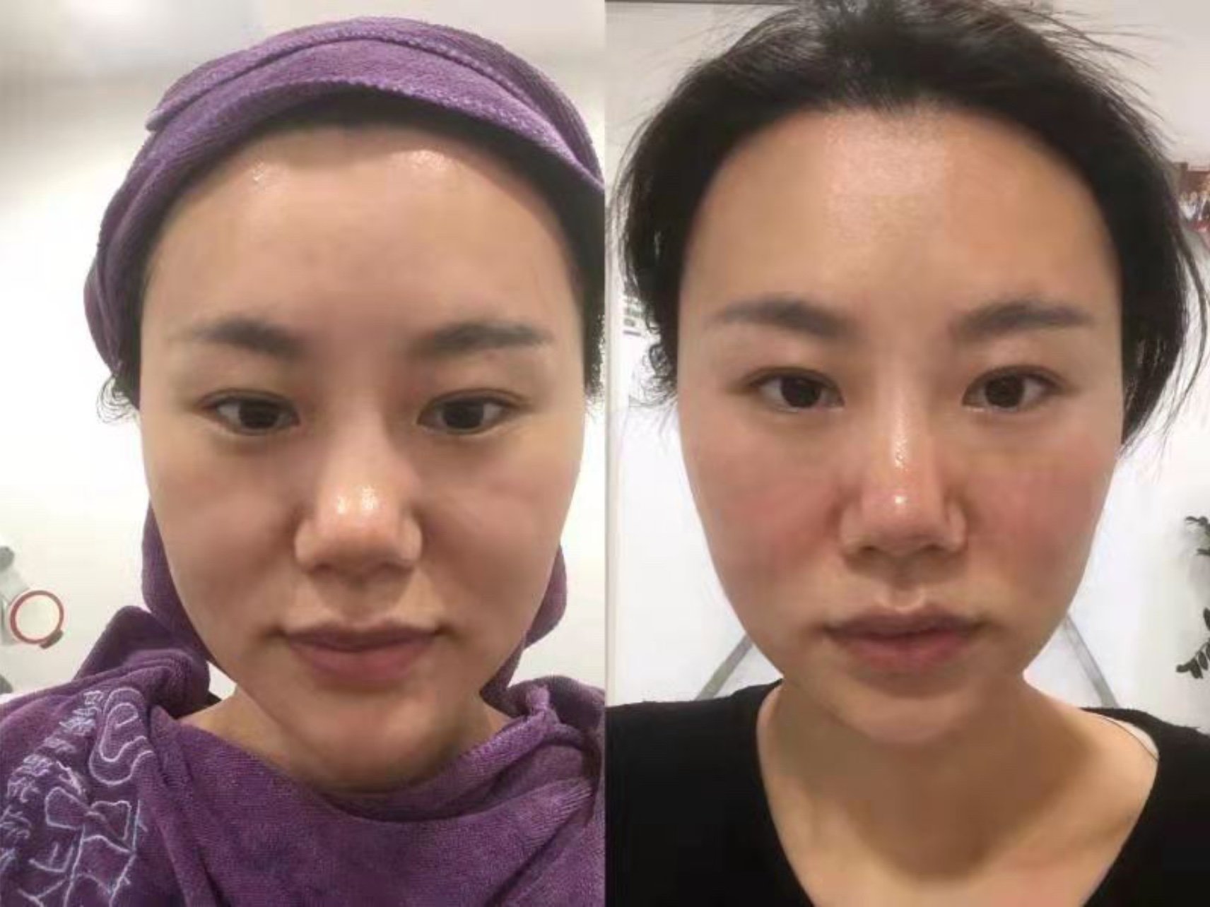 我自己照镜子对比了一下,最明显的地方是法令纹和苹果肌这一块有了明显的提升黑眼圈也轻了不少。至于皮肤整体肤质的改善宫院长说胶原蛋白的再生重组需要时间效果大概会在一个月后开始显现。