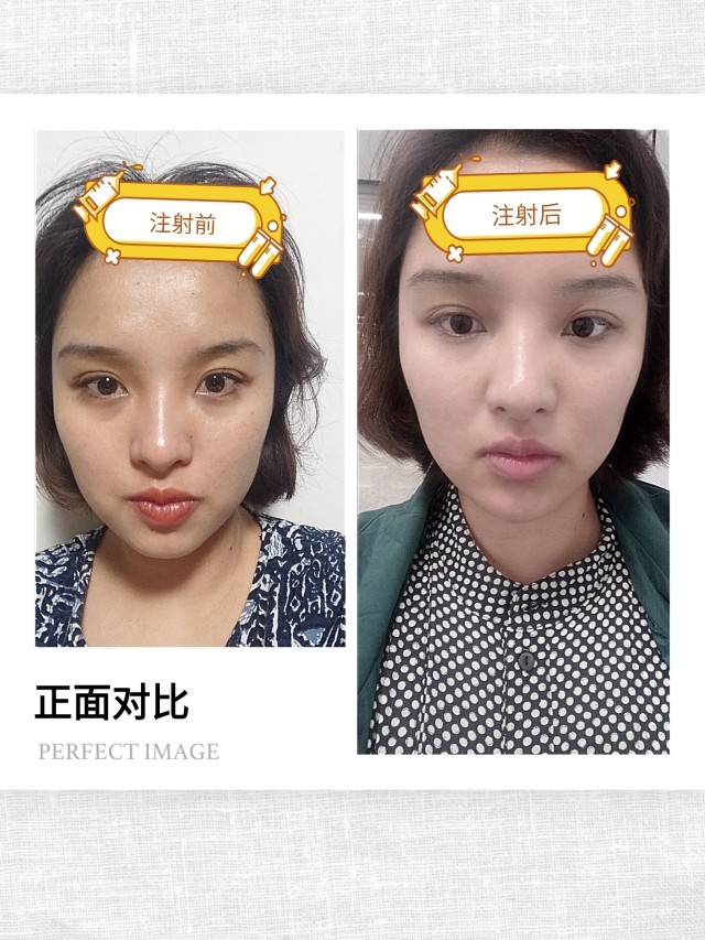 体验后效果:效果很明显,正面看的话嘴唇下面的窝出来了,照片可能拍的不太明显,侧面的改变就比较大,下巴凸出来了。肿胀感还算能忍受,针眼就正下方的那个比较明显