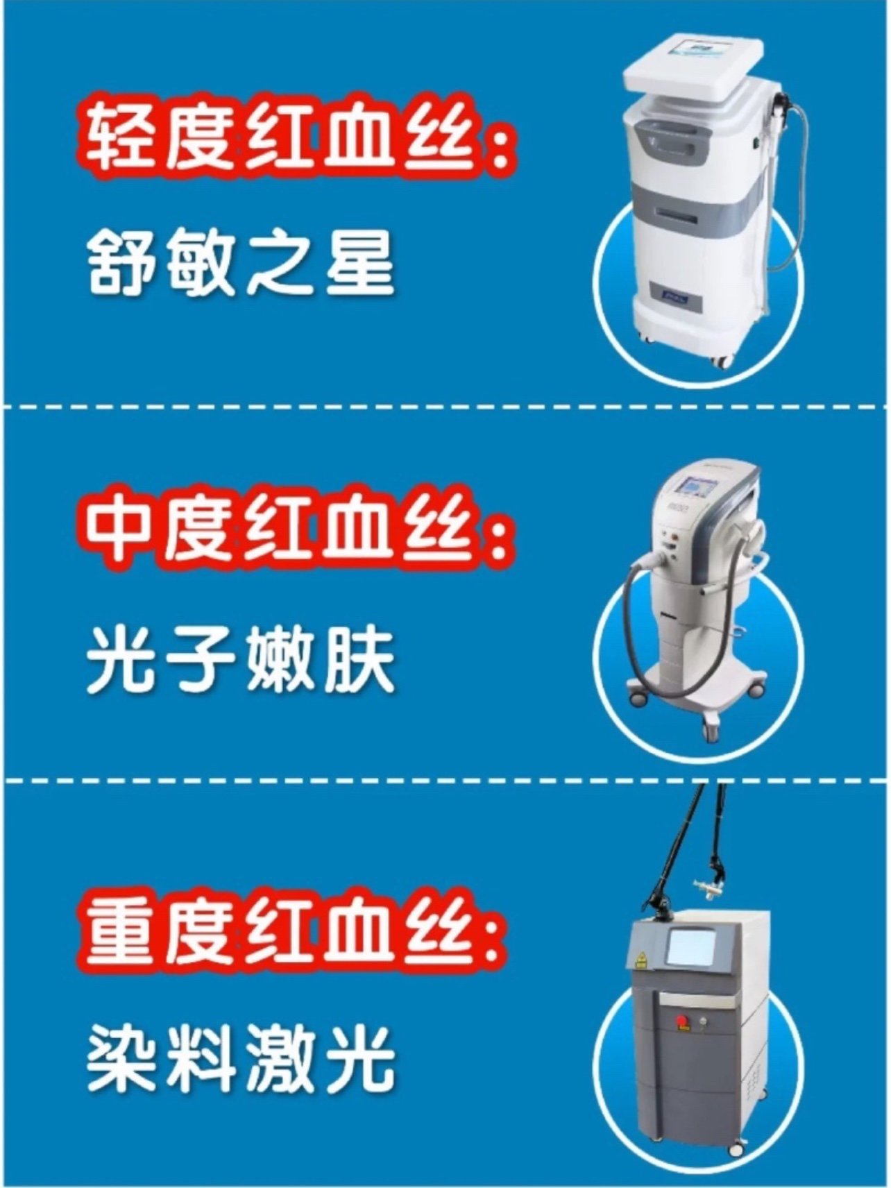 比如我们的光子嫩肤,长脉宽1064,红黄光,舒敏之星等等