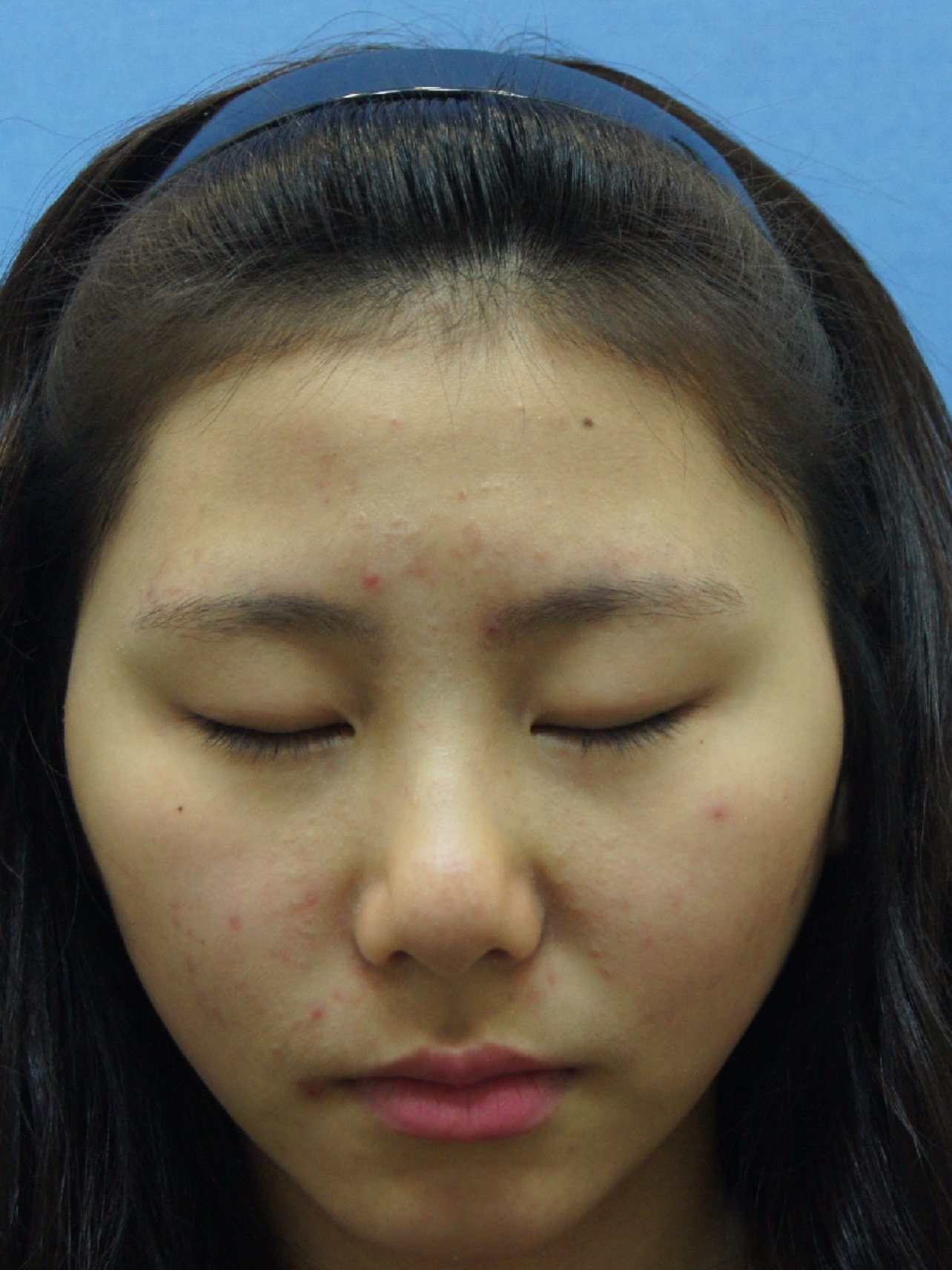 她的五官是很东方化的,整体五官并不是立体的,因此太宽的双眼皮是不适合的,所以给她双眼皮制定的形状是平扇型,手术术式是韩式微切双眼皮。