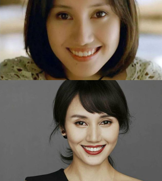 袁泉年轻时的眼睛很大并且有混血感,但是随着年龄的增长,脂肪和胶原蛋白加速流失。