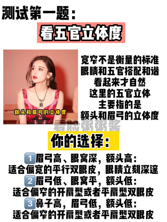 💜选择3-1 2-2 为主的:偏窄的开扇形双眼皮,中和长中庭的成熟感。