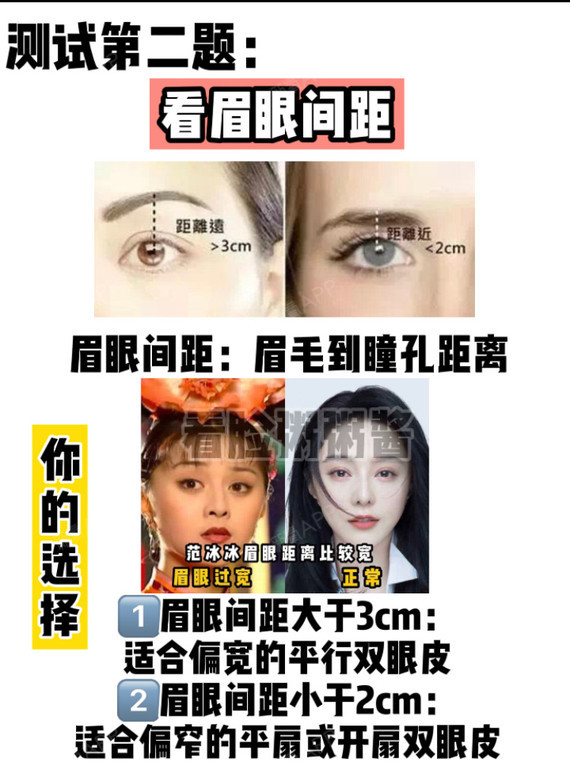 💚选择3-2 2-2为主的:因为眉眼间距窄,所以必须选择偏偏窄的开扇形或扇形的双眼皮