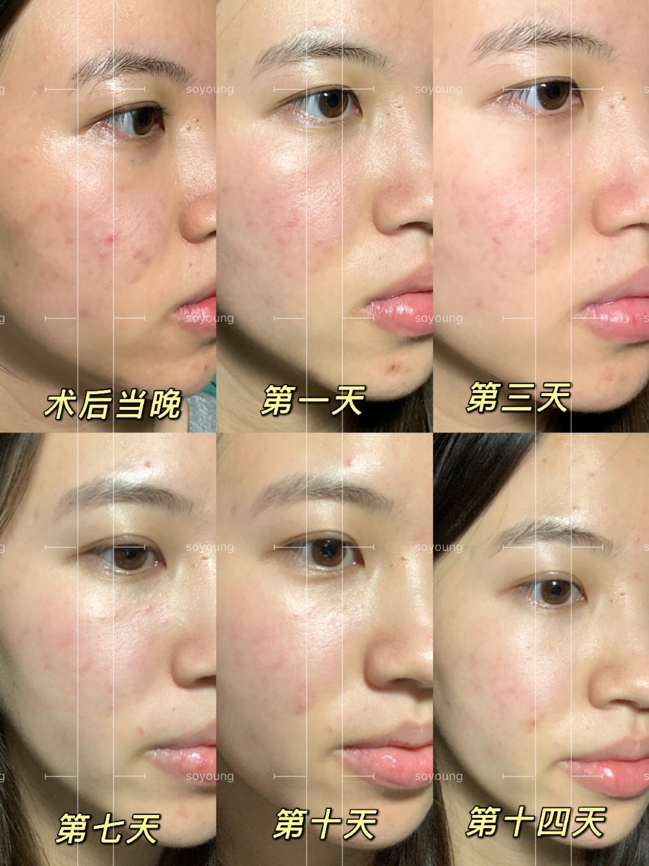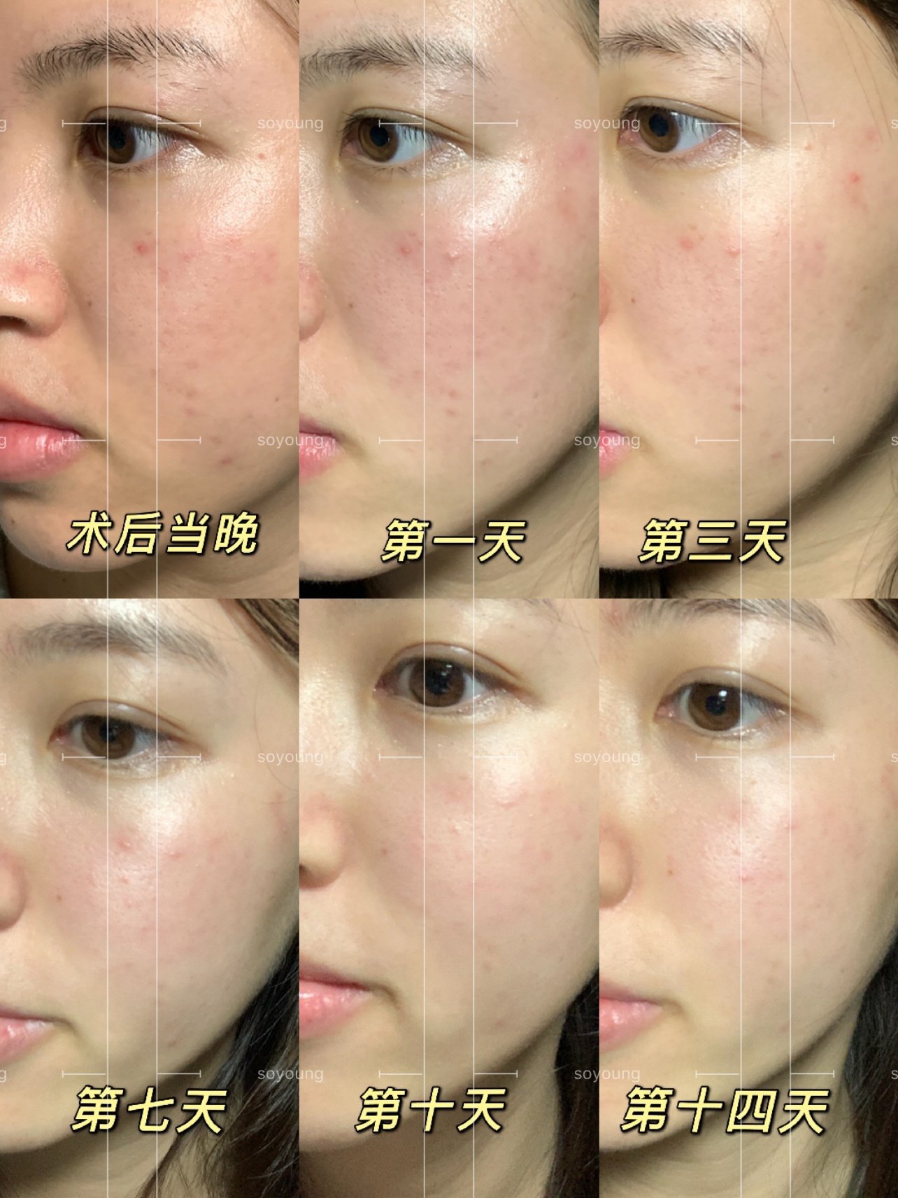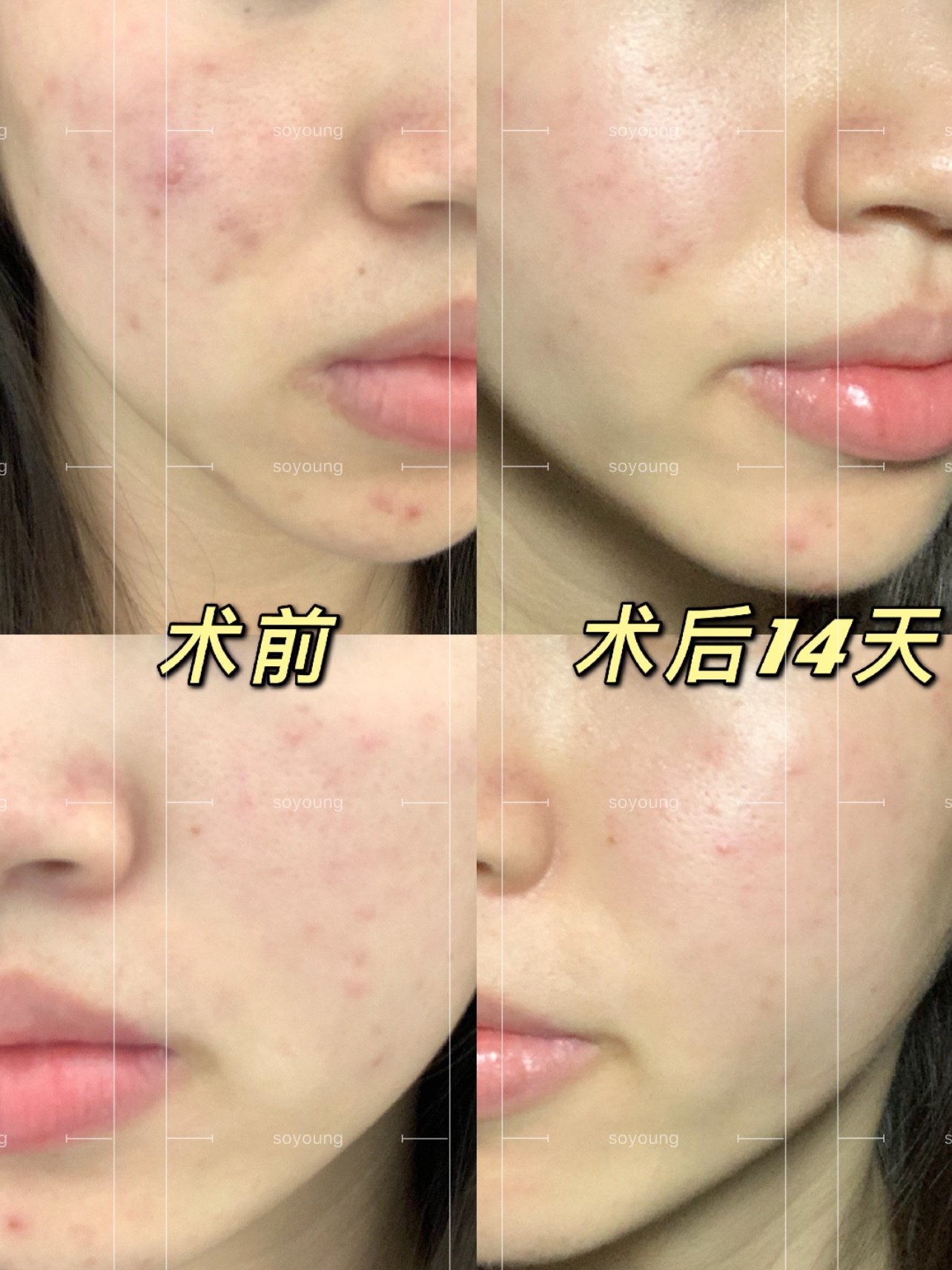 🧸术后14天的皮肤状态,整体肤色提亮,而且皮肤细腻了很多!!!暗沉痘印淡化,但是还是存在的,需要一段时间才能消~总体皮肤状态不错