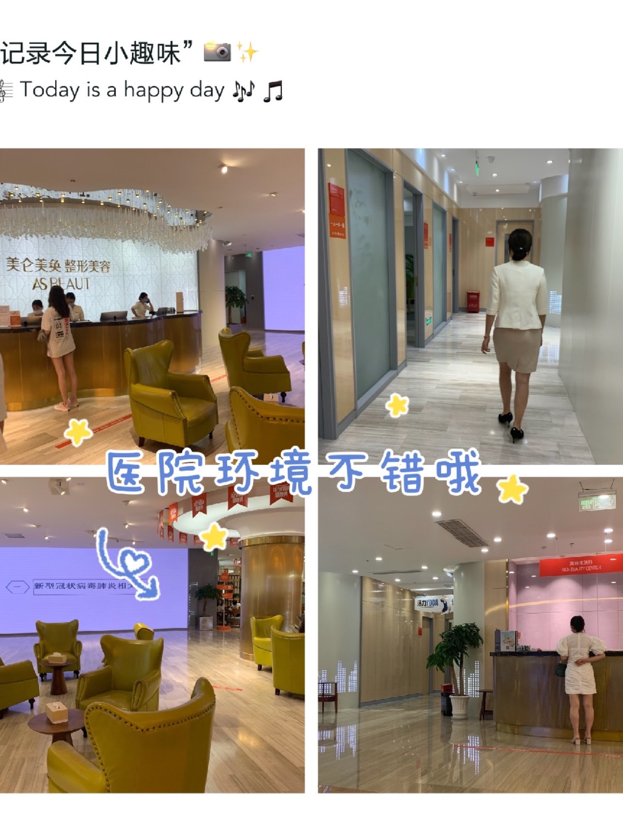 这次早鸟活动我的体验机构是重庆美仑美奂整形医院,医院在一个商场里面,交通很方便可以停车。大厅明亮整洁,每层楼的休息区都很宽敞,沙发位很多,我去的时候人不算多,一直都有一位漂亮顾问带领,服务非常nice🌹。最后在皮肤科排了一段时间队,加上治疗总共用时3小时。