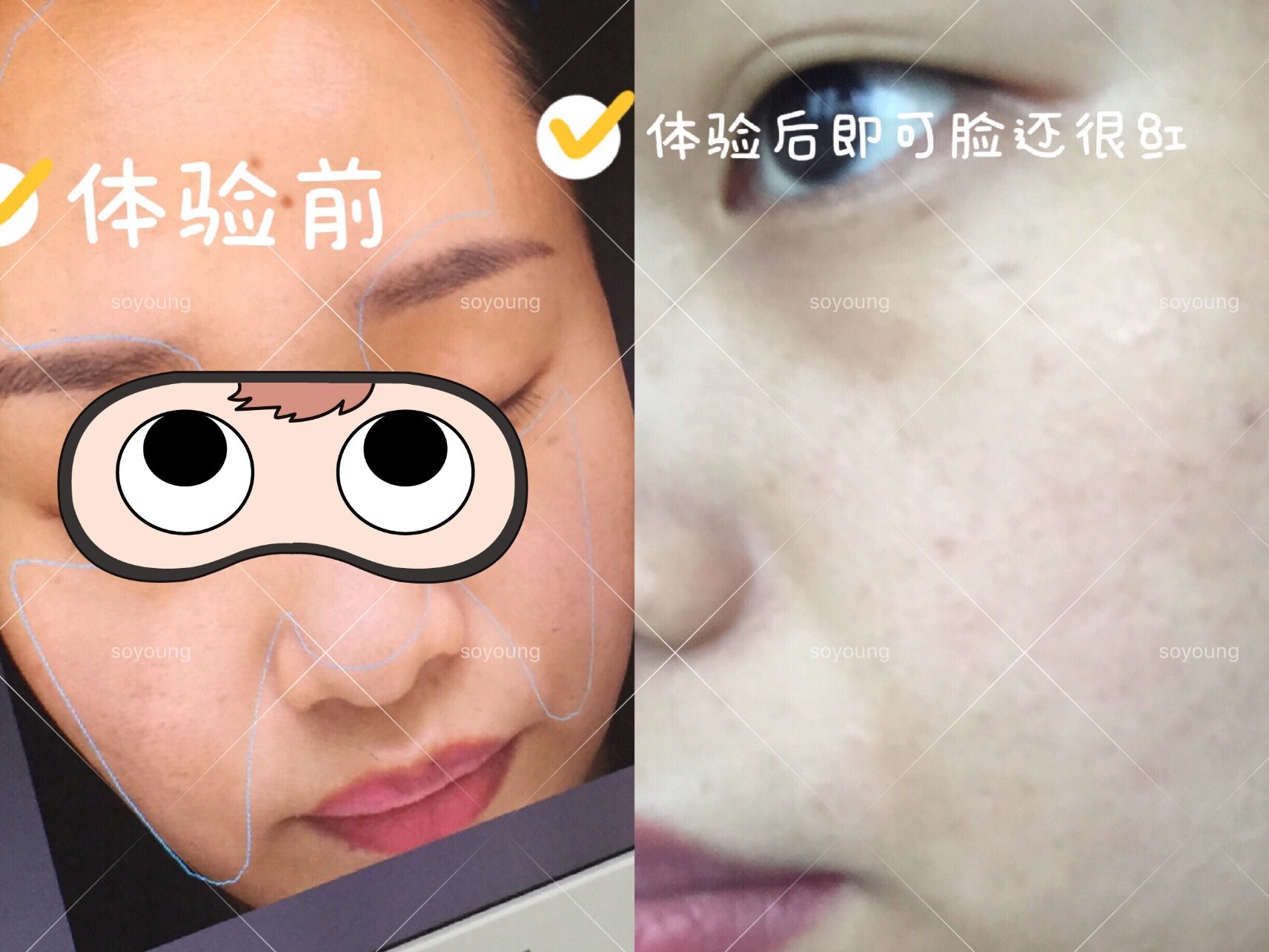 项目体验过程:接下来就是医生操作啦!重头戏来了,痛感我个人觉得还是感觉比较敏感可能跟我做完点阵距离一个月时间还太近有关系,操作医生也很温柔一直在关心我的感受并调节参数