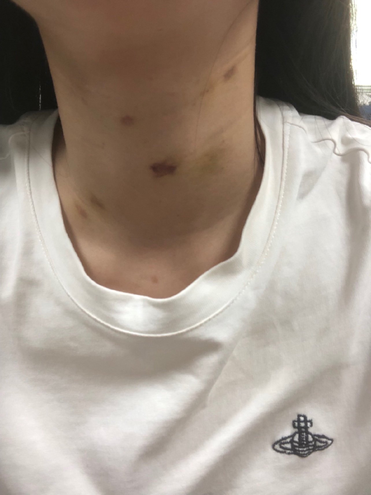 体验后效果:打完之后整个脖子特别红,还起小泡泡(因为打了2.5的,淤青比前两次要多,恢复时间 长一点)打完后,就开始冰敷,我大概敷了40分钟左右吧,可以看出劲纹好一些了,还送了一次腋下脱毛,送了洁面乳 修复霜,很满意~~