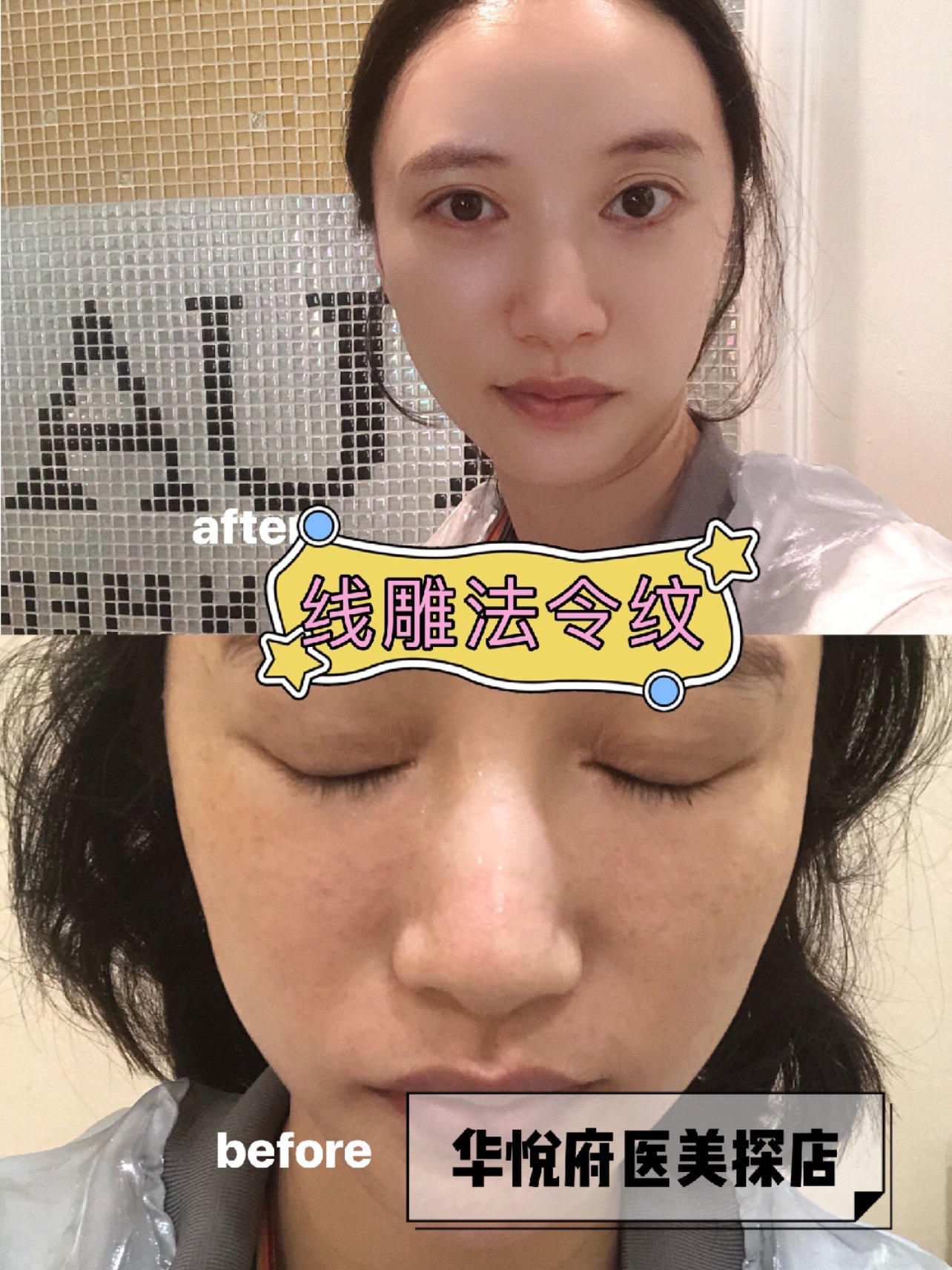效果还是有的,不过并没有那么明显,毕竟我的年纪在这摆着,而且我的鼻基底凹陷的厉害,线雕能改善一点法令纹我就会很开心了。