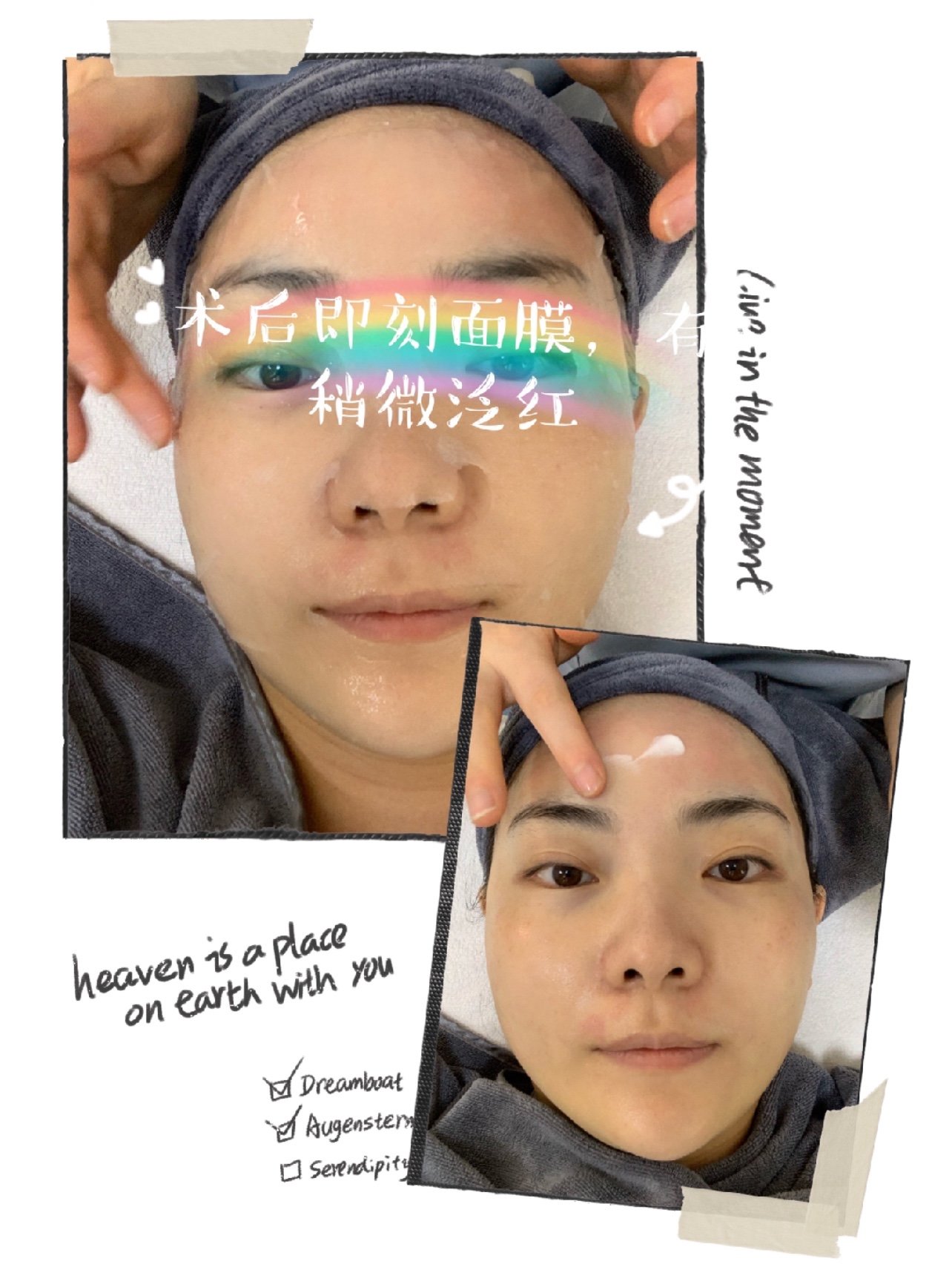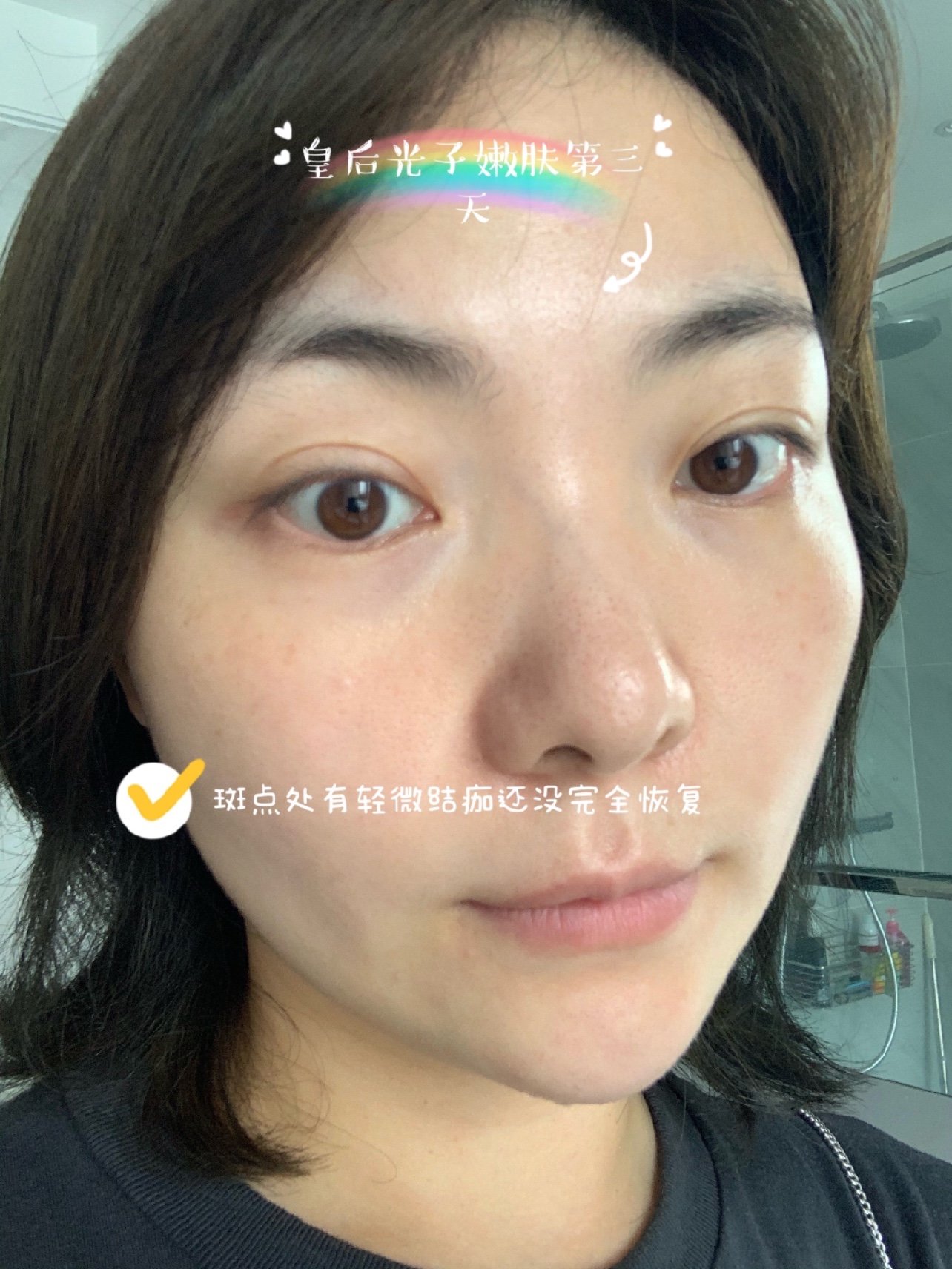 。第三遍再用提亮模式对重点部位进行巩固。打完光子卸除凝胶,🥰敷上面膜等待了15分钟,护士妹妹贴心的帮我揭下面膜再次洁面,还帮我涂了护肤霜和防晒霜,真是太细致了。👍👍👍