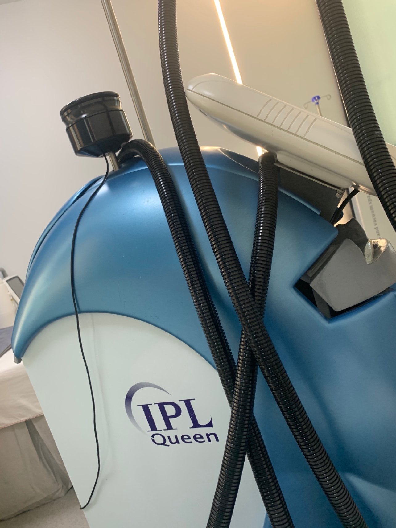 项目体验过程:护士小妹带我先洁面,给脸上涂上了一层厚厚的透明凝胶,遮住了眼睛防止光线过强,接着陈医生就开始操作了。使用的机器是IPL皇后光子仪器,第一遍是嫩肤模式,几乎没有痛感。第二遍是提亮模式,针对黑色素进行爆破达到淡斑提亮肤色的作用,痛感要强一些,咬牙坚持吧