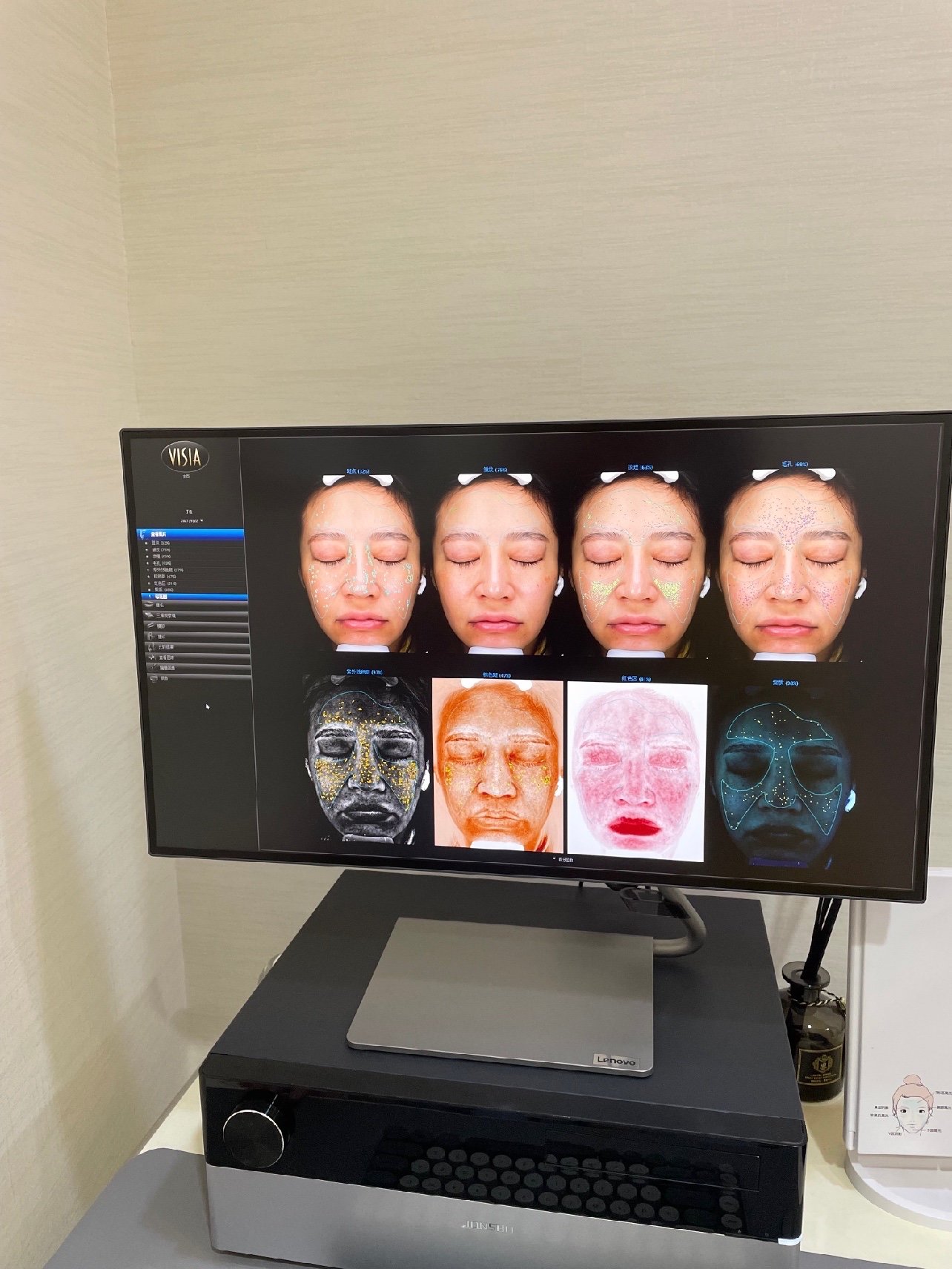 超龙是爱美客冭活泡泡针指定授牌单位,所以对于操作还是很成熟的,先做了个皮肤检测,看看我的皮肤状态,说实话,看到我那个满脸晒斑的脸还真的是不忍直视哈哈~~~
