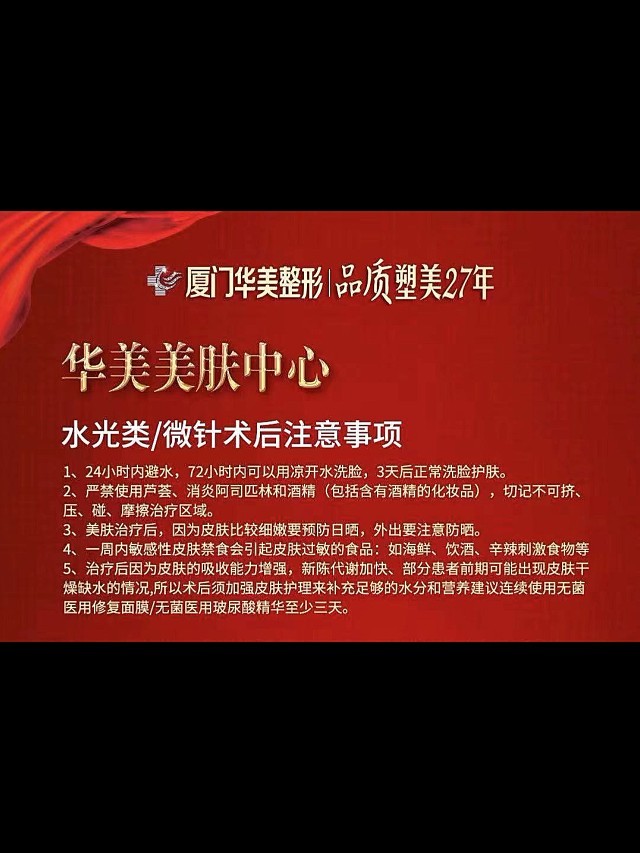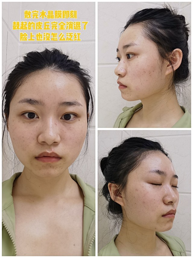 体验后效果:水晶膜大慨敷了三十分钟左右,手针打鼓起的皮丘都完全消退了,泛红也没那么明显✅(但是全脸针孔挺明显的)护士发了一份术后注意事项‼️(术后24小时不要碰水,注意防晒及术后补水)