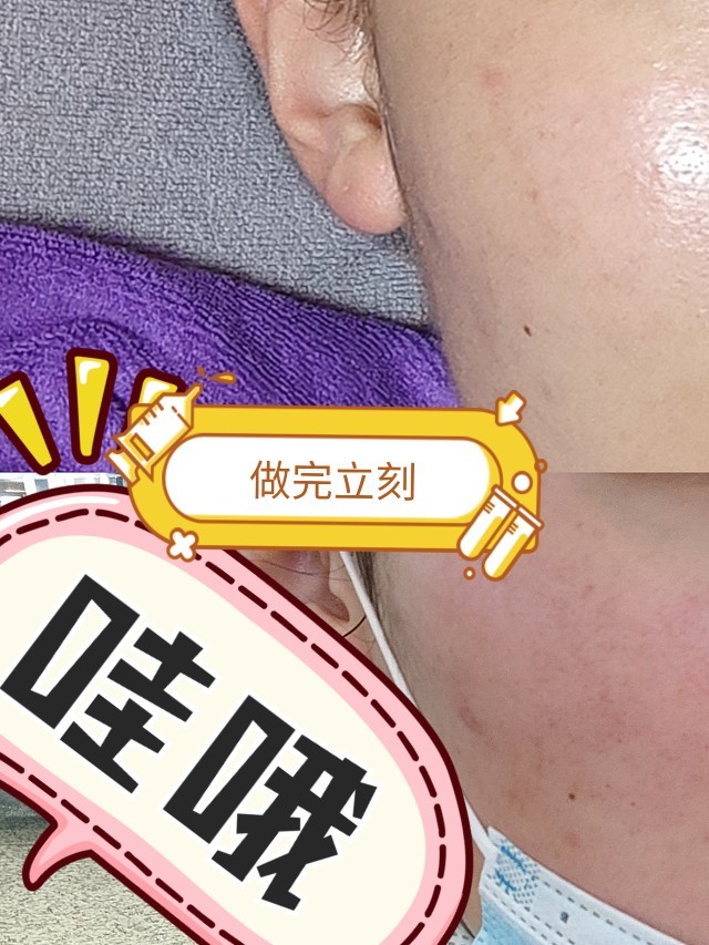 我都不敢想那个场面。拿前置看了一下不敢看了,帮我敷了面膜之后消退了一些,现在盐城站等高铁已经没什么感觉了,就和之前做微针是一个感受。麻麻的,没特别感觉,回去敷面膜规律养护好生防护就是了。