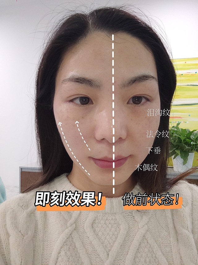 体验后即刻效果:🌟🌟做完后脸上不红不肿,不影响正常生活,做完半边脸后对比了一下,效果很明显,苹果肌提升了,法令纹淡化了,下颌缘也清晰点了。听说三个月效果会达到巅峰,好期待啊!后期会继续给大家汇报感受和效果~